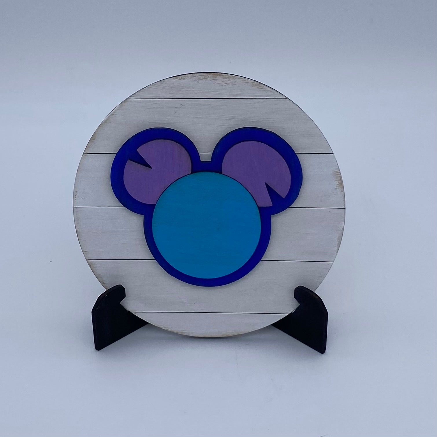 Greet the Lilo & Stitch Tiered Tray Shelf Sitter Set with a warm Aloha! Made from laser cut plywood, these pieces are hand-painted and uniquely one-of-a-kind. Keep in mind, measurements are estimated. You can buy each item separately or save more than 15% when you buy the whole set.